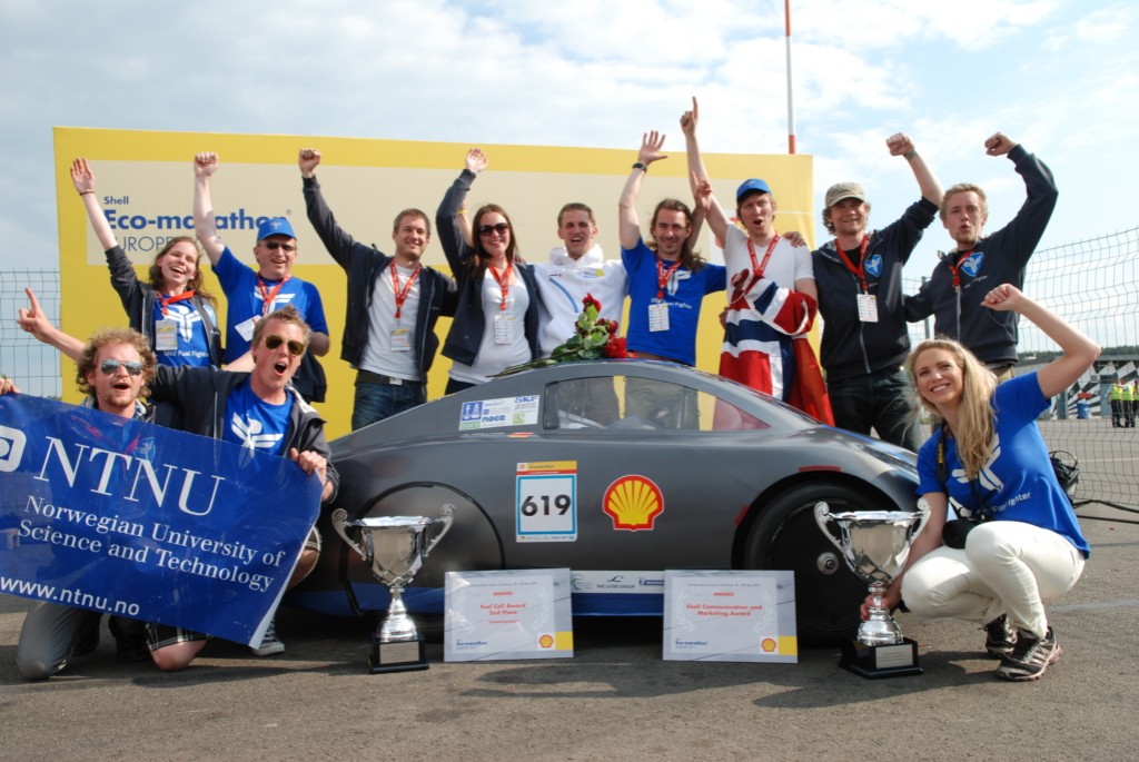 The first NTNU team to compete in Shell Eco-marathon was in 2008. The car was built over two years (2007-2008) by 13 students and, at the competition, the team finished second overall and won two special awards for communication and road safety.